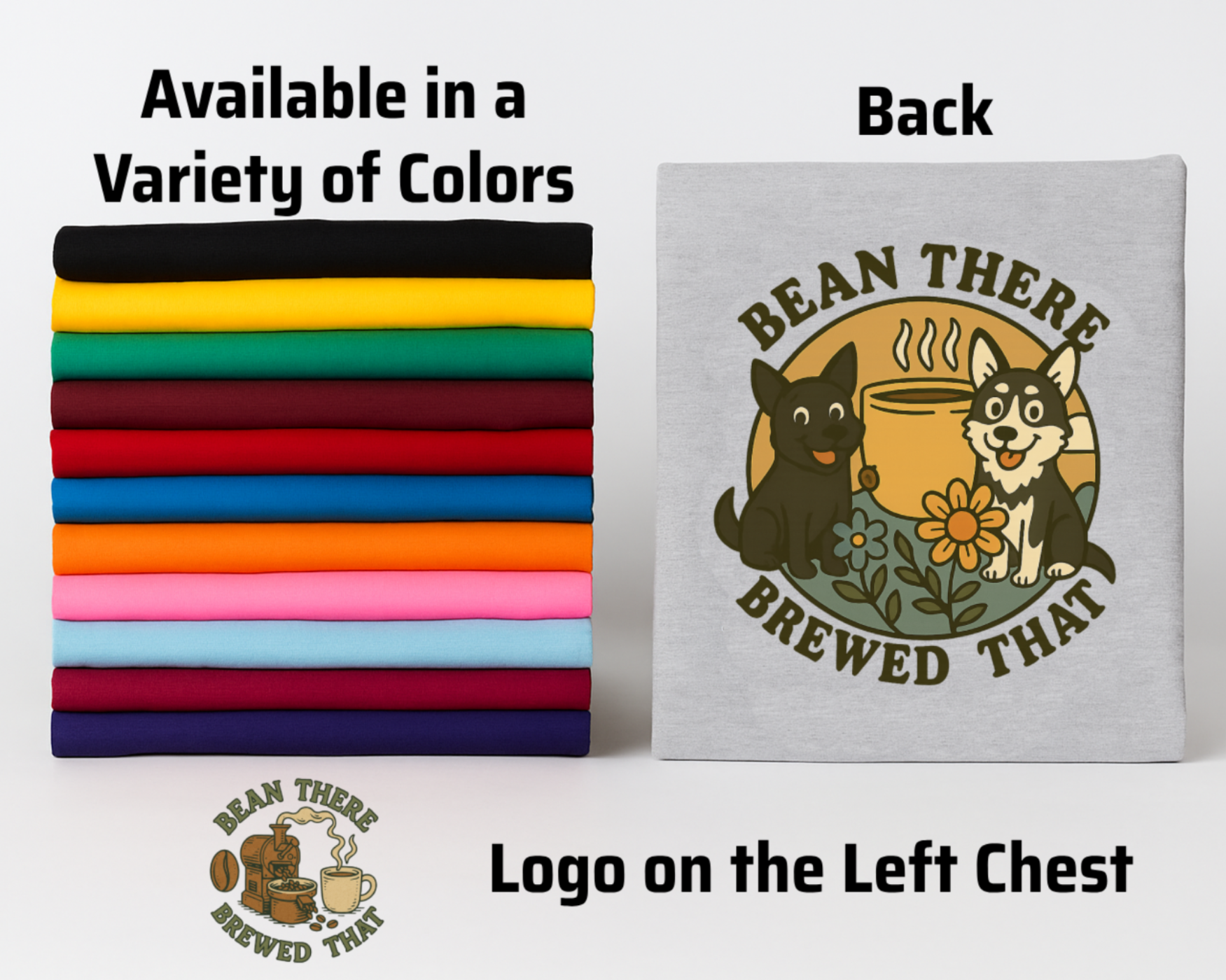 At Bean There, Brewed That, our shirts are more than just apparel—they’re a statement of community, creativity, pet loving, and coffee culture. Each shirt is hand-pressed with care and precision by us, ensuring every design reflects the spirit and story of our brand.