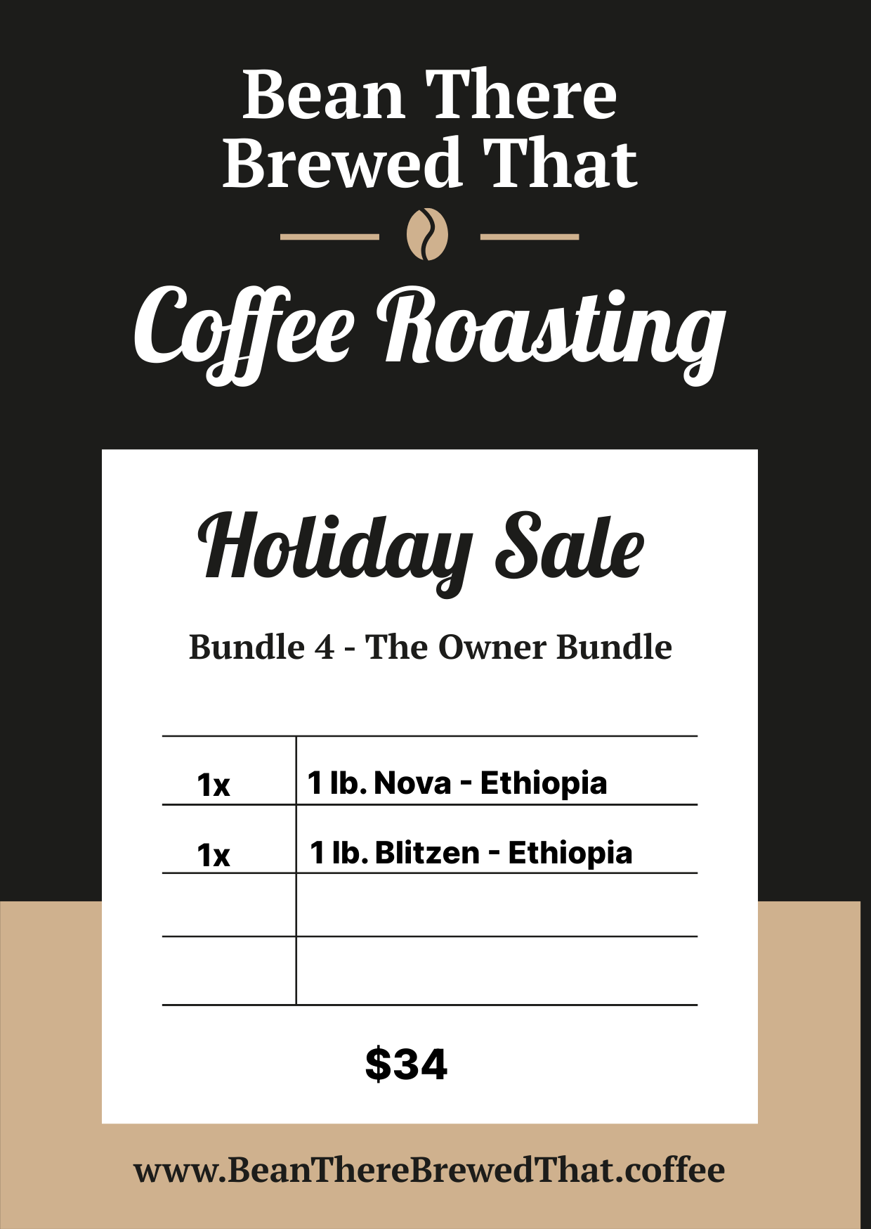 Meet the coffees inspired by the heart of our home. The Owner Bundle brings together a 1lb bag of Nova and a 1lb bag of Blitzen — two signature coffees named after Michael and Isabella’s beloved dogs, who inspire joy, energy, and a whole lot of personality behind the scenes at Bean There Brewed That.